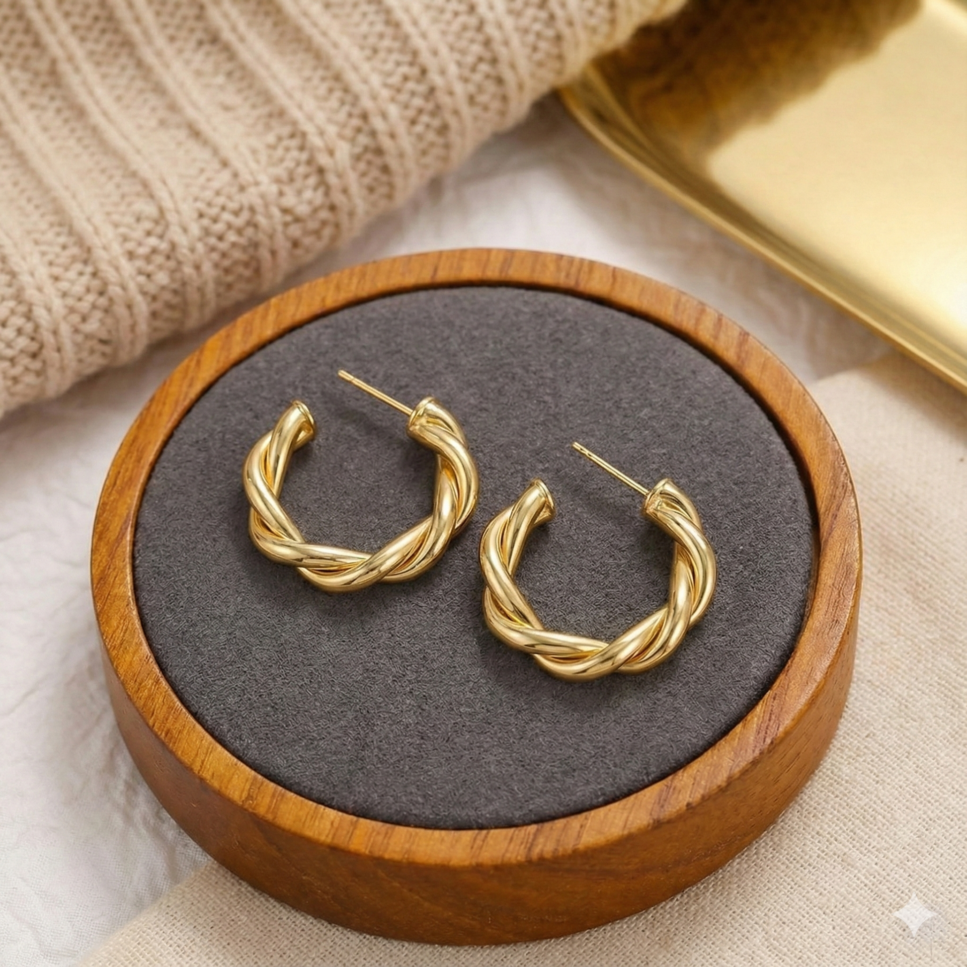Crafted with care, the twisted detailing adds a unique and fashionable edge, ensuring you stand out with elegance and grace. Lightweight and comfortable to wear, these earrings are a must-have addition to your jewelry collection.